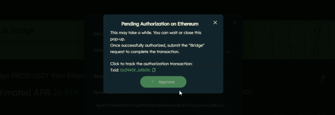 Input your desired USDT amount. Tap on the “Bridge” button to proceed.\